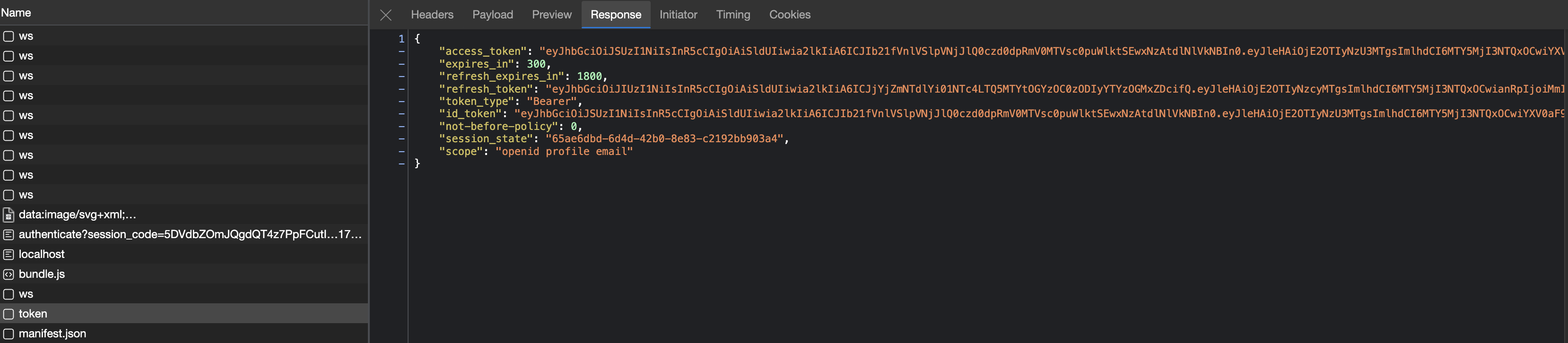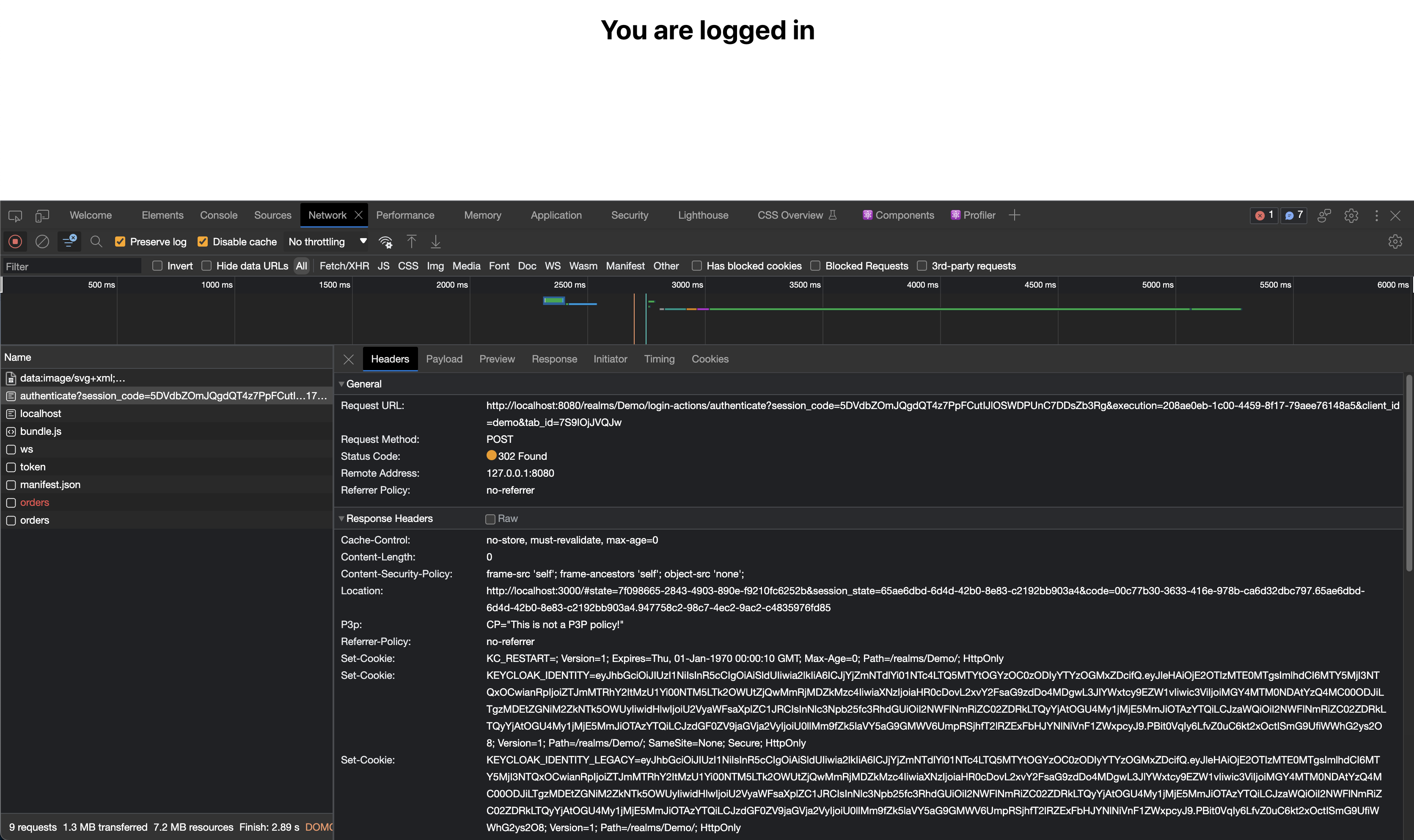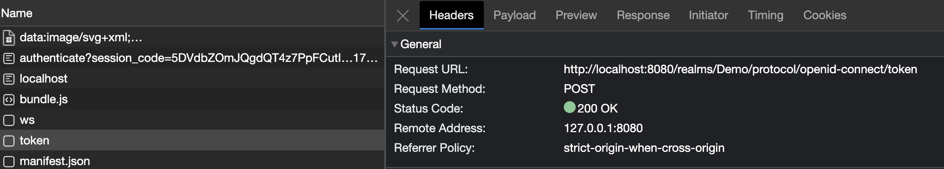 Let's take a look at the network requests that occur once we log in. The first request is to the Keycloak